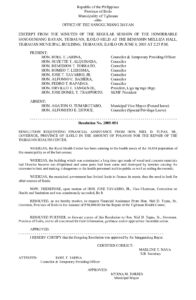 June 8, 2005 admin admin Comment off File Type: pdf File Size: 59 KB Categories: RESOLUTIONS Author: HON. JOSE TAVARRO JR Share: Resolution No. 2005-053 Resolution No. 2005-056