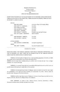 January 23, 2006 admin admin Comment off File Type: pdf File Size: 44 KB Categories: RESOLUTIONS Author: Hon. Alfonsito Estoce Share: Resolution No. 2006-013 Resolution No. 2006-010