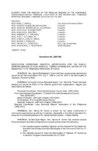 July 18, 2007 admin admin Comment off File Type: pdf File Size: 90 KB Categories: RESOLUTIONS Author: HON. SUZETTE TENEFRANCIA-ALQUISADA Share: Resolution No. 2007-050 Resolution No. 2007-049