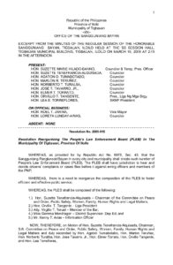 March 19, 2009 jin Comment off File Type: pdf File Size: 93 KB Categories: RESOLUTIONS Tags: Resolution Reorganizing The People’s Law Enforcement Board Author: HON. SUZETTE TENEFRANCIA-ALQUISADA Share: Resolution No. 2009-014 Resolution No. 2009-016