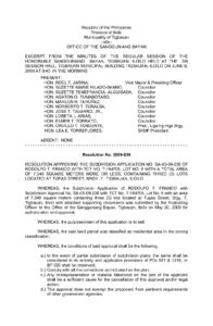 Tags: RESOLUTION APPROVING THE SUBDIVISION APPLICATION