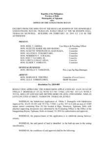Tags: RESOLUTION APPROVING THE SUBDIVISION APPLICATION