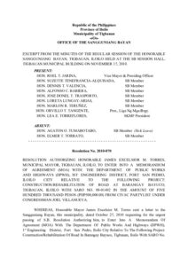 November 17, 2010 jin Comment off File Type: pdf File Size: 103 KB Categories: RESOLUTIONS Author: HON. DENNIS T. VALENCIA Share: Resolution No. 2010-071 Resolution No. 2010-074