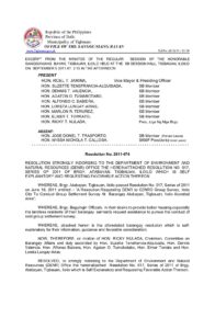 September 5, 2011 jin Comment off File Type: pdf File Size: 151 KB Categories: RESOLUTIONS Author: HON. RICKY T. NULADA Share: Resolution No. 2011-072 Resolution No. 2011-075