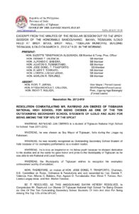 March 9, 2012 jin Comment off File Type: pdf File Size: 155 KB Categories: RESOLUTIONS Author: HON. JOSE DONEL T. TRASPORTO Share: Resolution No. 2012-014 Resolution No. 2012-018