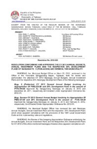 March 30, 2012 jin Comment off File Type: pdf File Size: 162 KB Categories: RESOLUTIONS Author: HON. SUZETTE TENEFRANCIA-ALQUISADA Share: Resolution No. 2012-024 Resolution No. 2012-027
