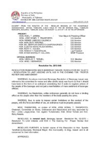 August 12, 2013 jin Comment off File Type: pdf File Size: 157 KB Categories: RESOLUTIONS Author: HON. JOSE DONEL T. TRASPORTO Share: Resolution No. 2013-051 Resolution No. 2013-047