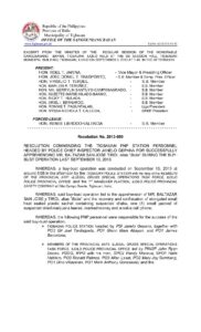 September 3, 2013 jin Comment off File Type: pdf File Size: 170 KB Categories: RESOLUTIONS Author: HON. RICKY T. NULADA Share: Resolution No. 2013-052 Resolution No. 2013-056