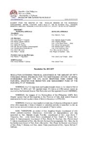 October 21, 2013 jin Comment off File Type: pdf File Size: 171 KB Categories: RESOLUTIONS Author: HON. ANGELICA KILAYKO Share: Resolution No. 2013-076 Resolution No. 2013-078