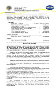 Tags: RESOLUTION APPROVING THE APPLICATION FOR SUBDIVISION APPROVAL