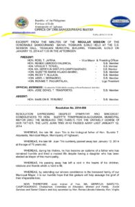 January 13, 2014 jin Comment off File Type: pdf File Size: 187 KB Categories: RESOLUTIONS Tags: RESOLUTION EXPRESSING DEEPEST SYMPATHY AND SINCEREST CONDOLENCES Share: Resolution No. 2014-003 Resolution No. 2014-005