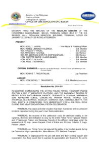 January 27, 2014 jin Comment off File Type: pdf File Size: 189 KB Categories: RESOLUTIONS Tags: RESOLUTION COMMENDING THE ENTIRE POLICE FORCE Author: HON. RICKY T. NULADA Share: Resolution No. 2014-010 Resolution No. 2014-012