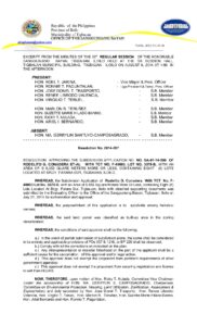 August 6, 2014 jin Comment off File Type: pdf File Size: 192 KB Categories: RESOLUTIONS Author: HON. RICKY T. NULADA Share: Municipal Ordinance No. 2014-017 Resolution No. 2014-100
