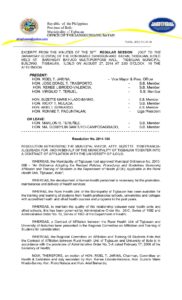 August 27, 2014 jin Comment off File Type: pdf File Size: 189 KB Categories: RESOLUTIONS Author: HON. ROEL T. JARINA Share: Municipal Ordinance No. 2014-020 Resolution No. 2014-108