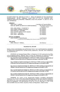 January 14, 2015 jin Comment off File Type: pdf File Size: 236 KB Categories: RESOLUTIONS Tags: RESOLUTION CONFORMING AND APPROVING THE CY 2014 Author: HON. JOSE DONEL T. TRASPORTO Share: Resolution No. 2015-010.pdf Resolution No. 2015-008