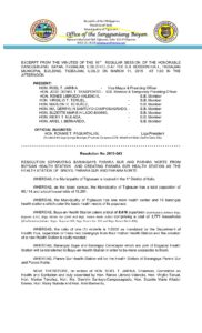 March 11, 2015 jin Comment off File Type: pdf File Size: 194 KB Categories: RESOLUTIONS Author: HON. ROEL T. JARINA Share: Resolution No. 2015-040 Municipal Ordinance No. 2015-001