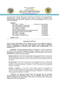 September 30, 2015 jin Comment off File Type: pdf File Size: 233 KB Categories: RESOLUTIONS Author: HON. RENEE LIBRODO-VALENCIA Share: Resolution No. 2015-110 Resolution No. 2015-113