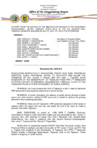 July 27, 2016 jin Comment off File Type: pdf File Size: 497 KB Categories: RESOLUTIONS Author: HON. NERI T. CAMIÑA Share: Resolution No. 2016-071 Resolution No. 2016-075