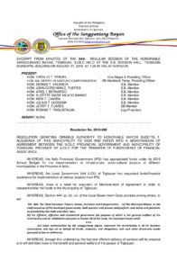 August 31, 2016 jin Comment off File Type: pdf File Size: 746 KB Categories: RESOLUTIONS Author: VICE MAYOR VIRGILIO T. TERUEL Share: Municipal Ordinance No. 2016-016 Resolution No. 2016-093