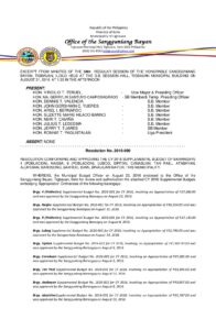 August 31, 2016 jin Comment off File Type: pdf File Size: 784 KB Categories: RESOLUTIONS Author: HON. DENNIS T. VALENCIA Share: Resolution No. 2016-088 Municipal Ordinance No. 2016-016 – AN ORDINANCE TEMPORARILY CLOSING ALLERA STREET (FRONTING ST. JOHN OF SAHAGUN PARISH CHURCH), THIS MUNICIPALITY IN CONNECTION WITH THE CELEBRATION OF THE FEAST DAY OF THE BIRTH OF THE BLESSED VIRGIN MARY ON SEPTEMBER 8, 2016.