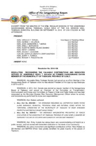 September 14, 2016 jin Comment off File Type: pdf File Size: 851 KB Categories: RESOLUTIONS Author: HON. MA. GERRYLIN SANTUYO-CAMPOSAGRADO Share: Resolution No. 2016-097 Resolution No. 2016-103