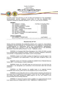 March 1, 2017 jaylord Comment off File Type: pdf File Size: 789 KB Categories: RESOLUTIONS Author: HON. JOHN GERSHWIN C. TUERES Share: Municipal Ordinance No. 2017-008 – AN ORDINANCE TEMPORARILY CLOSING PORTION OF TANTIADO STREET, BARANGAY 5 POBLACION, TIGBAUAN, ILOILO DUE TO THE DEATH AND WAKE OF SERAPIA T. TUMILBA Resolution No. 2017-042