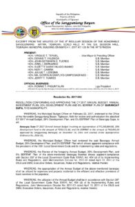 March 1, 2017 jaylord Comment off File Type: pdf File Size: 735 KB Categories: RESOLUTIONS Author: HON. JOHN GERSHWIN C. TUERES Share: Resolution No. 2017-041 Resolution No. 2017-045