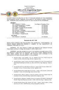 April 26, 2017 jaylord Comment off File Type: pdf File Size: 726 KB Categories: RESOLUTIONS Author: HON. NERI T. CAMIÑA Share: Resolution No. 2017-053 Resolution No. 2017-056