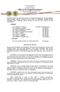 May 24, 2017 jaylord Comment off File Type: pdf File Size: 772 KB Categories: RESOLUTIONS Author: HON. JERRY T. TUARES Share: Resolution No. 2017-069 Municipal Ordinance No. 2017-010