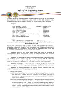 Resolution No. 2017-105 – RESOLUTION AUTHORIZING THE MUNICIPAL MAYOR, ATTY. SUZETTE TENEFRANCIA- ALQUISADA FOR AND IN BEHALF OF THE MUNICIPALITY OF TIGBAUAN TO ENTER INTO A MEMORANDUM OF AGREEMENT WITH MEDICUS PHILIPPINES INC. FOR THE RANDOM DRUG TEST OF “OPLAN TOKHANG” SURRENDEREES.