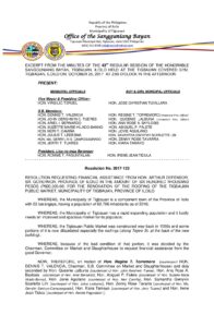 October 25, 2017 jaylord Comment off File Type: pdf File Size: 687 KB Categories: RESOLUTIONS Author: Hon. Regine T. Torremoro Share: Municipal Ordinance No. 2017-017 Resolution No. 2017-123