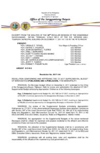 Resolution No. 2017-144 – RESOLUTION CONFORMING AND APPROVING THE CY 2017 SUPPLEMENTAL BUDGET OF BARANGAYS 2 (POBLACION) AND 3 (POBLACION), THIS MUNICIPALITY.
