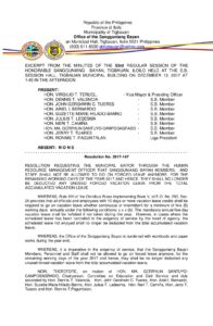 December 13, 2017 jaylord Comment off File Type: pdf File Size: 568 KB Categories: RESOLUTIONS Author: HON. MA. GERRYLIN SANTUYO-CAMPOSAGRADO Share: Resolution No. 2017-146 Resolution No. 2018-001