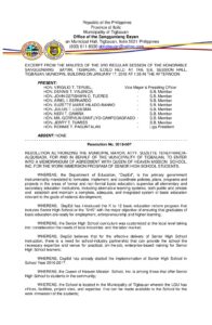 Tags: . FOR AND IN BEHALF OF THE MUNICIPALITY OF TIGBAUAN, ATTY. SUZETTE TENEFRANCIAALQUISADA, RESOLUTION AUTHORIZING THE MUNICIPAL MAYOR