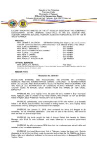 Resolution No. 2018-041 – RESOLUTION THANKING AND RECOGNIZING THE EFFORTS OF OVERSEAS WORKERS WELFARE ADMINISTRATION (OWWA), ESPECIALLY TO ADMINISTRATOR HANS LEO CACDAC AND AKSYON RADYO ILOILO IN HELPING AND FACILITATING FOR THE RESCUE AND REPATRIATION OF OVERSEAS FILIPINO WORKER (OFW) JONA TAGHAP TEVES AT RIYADH, SAUDI ARABIA FROM THE HANDS OF HER CRUEL EMPLOYER