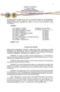 Resolution No. 2018-056 – RESOLUTION REQUESTING FINANCIAL ASSISTANCE FROM GOVERNOR ARTHUR DEFENSOR, SR., PROVINCE OF ILOILO, IN THE AMOUNT OF TWO HUNDRED FIFTY THOUSAND (P250,000.00) PESOS FOR THE REPAIR OF THE HANGING FOOT BRIDGE LOCATED AT BARANGAY NAPNAPAN SUR, TIGBAUAN, ILOILO
