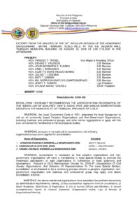 Resolution No. 2018-106 – RESOLUTION FAVORABLY RECOMMENDING THE ACCREDITATION/ RECOGNITION OF THE HEREIN LIST OF QUALIFIED CSO’ S, NGO’S, PO’S, AND SIMILAR AGGRUPATIONS/ GROUPS IN THE MUNICIPALITY OF TIGBAUAN, PROVINCE OF ILOILO”
