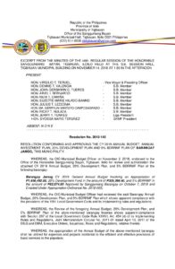 Tags: 20% DEVELOPMENT PLAN AND 5% BDRRMF PLAN OF BARANGAY JAMOG, ANNUAL INVESTMENT PLAN, CY 2019 ANNUAL BUDGET