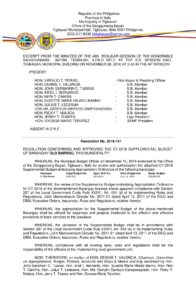 November 28, 2018 Pilar Manibog Comment off File Type: pdf File Size: 512 KB Categories: RESOLUTIONS Tags: CY 2018 SUPPLEMENTAL BUDGET OF BARANGAY OLO BARROC Author: HON. DENNIS T. VALENCIA rs_page_bg_color: Share: Resolution No. 2018-150 – RESOLUTION CONFORMING AND APPROVING THE CY 2019 ANNUAL BUDGETS, ANNUAL INVESTMENT PLANS, 20% DEVELOPMENT PLANS, 10% SK FUND AND 5% BDRRMF PLANS OF BARANGAYS BITAS AND TARO, THIS MUNICIPALITY. Resolution No. 2018-152 – RESOLUTION EXPRESSING DEEPEST SYMPATHY AND CONDOLENCES TO THE BEREAVED FAMILY OF THE LATE FORMER PUNONG BARANGAY ERNESTO TOLOSA TALISEO OF BARANGAY 2 (POBLACION), THIS MUNICIPALITY FOR HIS DEDICATED AND EFFECTIVE PUBLIC SERVICE