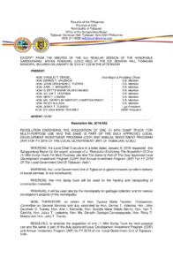 January 9, 2019 jaylord Comment off File Type: pdf File Size: 301 KB Categories: RESOLUTIONS Tags: RESOLUTION ENDORSING THE ACQUISITION OF ONE (1) MINI DUMP TRUCK FOR MULTI-PURPOSE USE Author: Hon. Dyossa Marie Teruñez Share: Resolution No. 2019-003 COMMITTEE REPORT NO. 2019-001