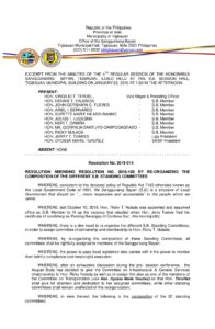 Tags: RESOLUTION AMENDING RESOLUTION NO. 2018-126 BY RE-ORGANIZING THE COMPOSITION OF THE DIFFERENT S.B. STANDING COMMITTEES