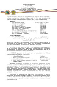 Resolution No. 2019-116 – RESOLUTION FAVORABLY RECOMMENDING THE ACCREDITATION/RECOGNITION OF THE HEREIN LIST OF QUALIFIED CSO’ S, NGO’S, PO’S, AND SIMILAR AGGRUPATIONS/ GROUPS IN THE MUNICIPALITY OF TIGBAUAN, PROVINCE OF ILOILO”
