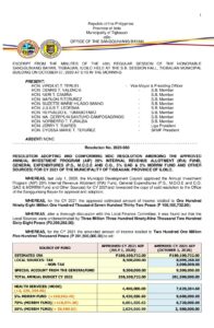RESOLUTION ADOPTING AND CONFORMING MDC RESOLUTION AMENDING THE APPROVED ANNUAL INVESTMENT PROGRAM (AIP) 20% INTERNAL REVENUE ALLOTMENT (IRA) FUND