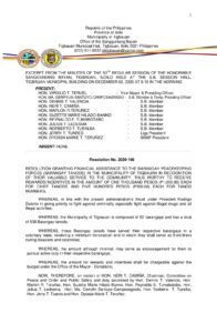 Resolution No. 2020-106 – RESOLUTION GRANTING FINANCIAL ASSISTANCE TO THE BARANGAY PEACEKEEPING FORCES (BARANGAY TANODS) IN THE MUNICIPALITY OF TIGBAUAN IN RECOGNITION OF THEIR VALUABLE SERVICE TO THE COMMUNITY, THUS WORTHY TO RECEIVE REWARDS/INCENTIVES IN THE AMOUNT OF ONE THOUSAND PESOS (P1,000.00) EACH FOR CHIEF TANODS AND FIVE HUNDRED PESOS (P500.00) EACH FOR TANOD MEMBERS.