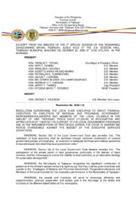 December 22, 2020 jaylord Comment off File Type: pdf File Size: 355 KB Categories: RESOLUTIONS Author: HON. MA. GERRYLIN SANTUYO-CAMPOSAGRADO Share: Resolution No. 2020-116 Appropriation Ordinance No. 2020-009 Supplemental Budget No. 2020-005