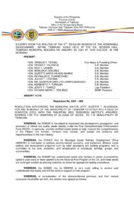 Resolution No. 2021-009 – RESOLUTION AUTHORIZING THE MUNICIPAL MAYOR, ATTY. SUZETTE T. ALQUISADA, FOR AND IN BEHALF OF THE MUNICIPALITY OF TIGBAUAN TO ENTER INTO A DEED OF DONATION (DOD) WITH THE PHILIPPINE RICE RESEARCH INSTITUTE (PHILRICE- NEGROS) FOR THE DONATION OF 28 BAGS OF SEEDS TO THE MUNICIPALITY OF TIGBAUAN