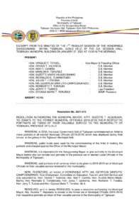 Resolution No. 2021-012 – RESOLUTION AUTHORIZING THE MUNICIPAL MAYOR, ATTY. SUZETTE T. ALQUISADA, TO DONATE TO THE FORMER MUNICIPAL OFFICIALS (2016-2019) THEIR RESPECTIVE PORTRAITS AS TOKEN OF THEIR VALUABLE SERVICE TO THE MUNICIPALITY OF TIGBAUAN, PROVINCE OF ILOILO.