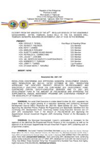 “RESOLUTION APPROVING THE IDENTIFIED PRIORITY PROJECTS RE-PROGRAMMED AND SPECIFICALLY IDENTIFIED FROM THE CONTINUING 20% DEVELOPMENT FUND, 2021, CONTINUING CAPITAL OUTLAY-EXECUTIVE SERVICES AND CY 2021 20% DEVELOPMENT FUND, DATED OCTOBER 22, DEVELOPMENT COUNCIL (MDC) RESOLUTION NO. 2021-03