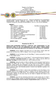 Tags: DEDICATED AND EFFECTIVE SERVICE TO THE PEOPLE OF TIGBAUAN., DR. ROEL “BIBOY” TAÑEZA JARINA, FOR HIS LONG, HEARTFELT SYMPATHY AND CONDOLENCES TO THE BEREAVED FAMILY OF THE LATE HONORABLE
