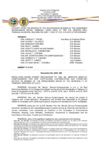 Resolution No. 2022-062 – RESOLUTION GIVING UTMOST RECOGNITION TO HON. MA. GERRYLIN SANTUYO- CAMPOSAGRADO FOR HER OUTSTANDING CONTRIBUTIONS AND EXEMPLARY SERVICE AS MEMBER OF THE SANGGUNIANG BAYAN OF THE MUNICIPALITY OF TIGBAUAN, PROVINCE OF ILOILO.